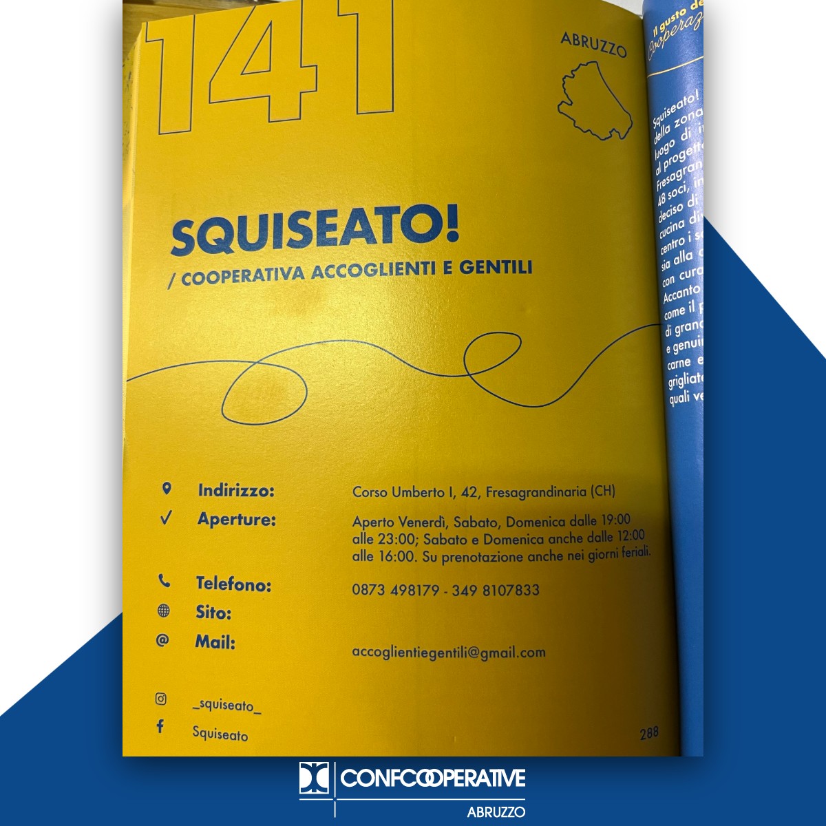 Anche l’Abruzzo è rappresentato all’interno della guida, con Squiseato! della Cooperativa “Accoglienti e Gentili”: un luogo di incontro e valorizzazione della tradizione locale per un’esperienza di gusto che unisce qualità, accoglienza e impegno sociale.
