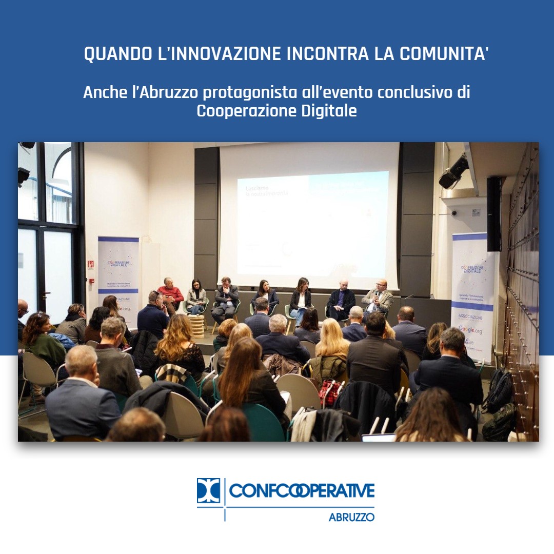 Una giornata di confronto e condivisione che ha messo al centro il valore del digitale come leva di sviluppo economico e sociale, capace di rafforzare le comunità, innovare i servizi e rendere le cooperative più competitive e sostenibili. Tra i protagonisti dell’evento anche l’Abruzzo, grazie alla partecipazione della cooperativa Eucora di Pescara, associata a Confcooperative Abruzzo.